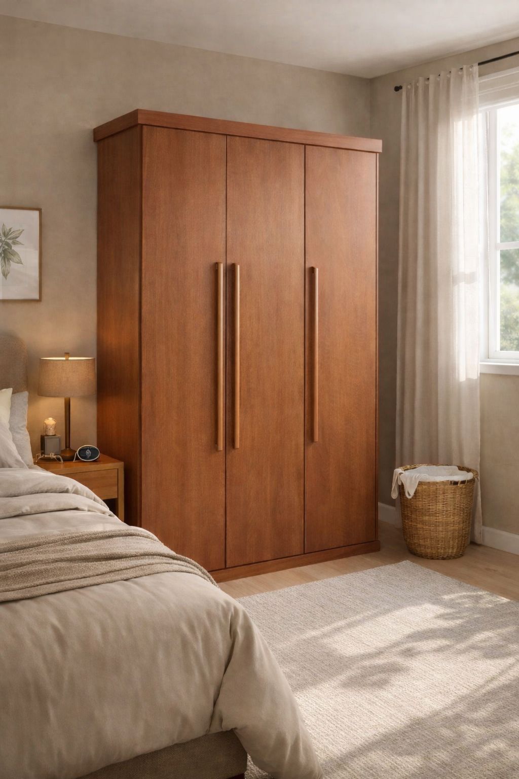 O Roupeiro de Madeira Maciça 3 Portas é uma peça pensada para quem busca beleza, durabilidade e um visual atemporal para o quarto. Com linhas retas e elegantes, ele combina perfeitamente com ambientes clássicos, aconchegantes e sofisticados.